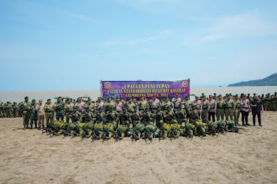 Penyematan baret dan brevet warga kehormatan Kostrad terhadap Kapolri tersebut dilaksanakan usai Upacara penutupan latihan standardisasi prajurit Kostrad di Pantai Palangpang Kecamatan Ciemas, Kabupaten Sukabumi, Jawa Barat, Selasa, 13 September 2022.