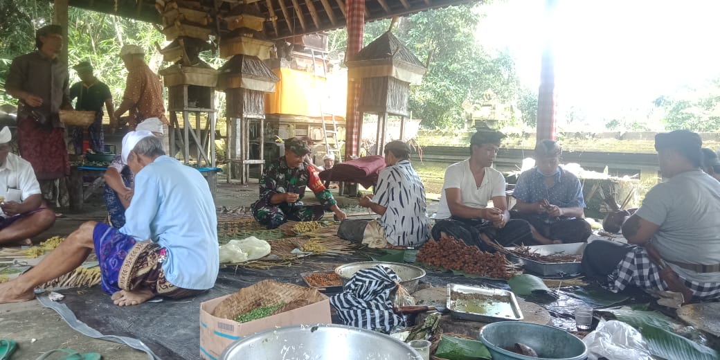 Disambut oleh Pekaseh Subak Selasih Desa Sanding, Dewa Made Rai, Babinsa dan Bhabinkamtibmas diterima dengan baik dan sekalian ikut ngayah dalam rangka persiapan Odalan di Pura Masceti Subak Selasih Desa Sanding yang akan dilaksanakan besok, Rabu 26 Oktober 2022 bertepatan dengan Hari Suci Pagerwesi.